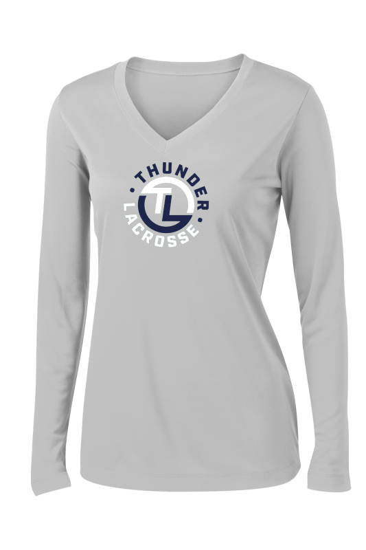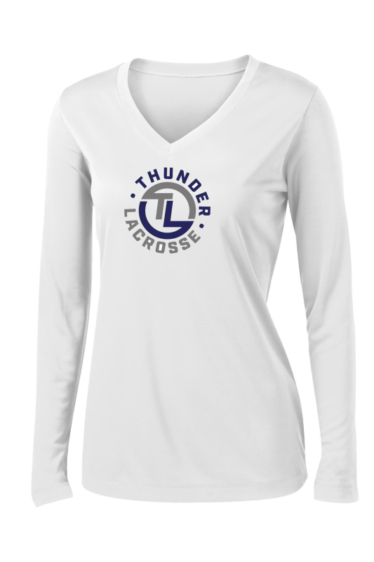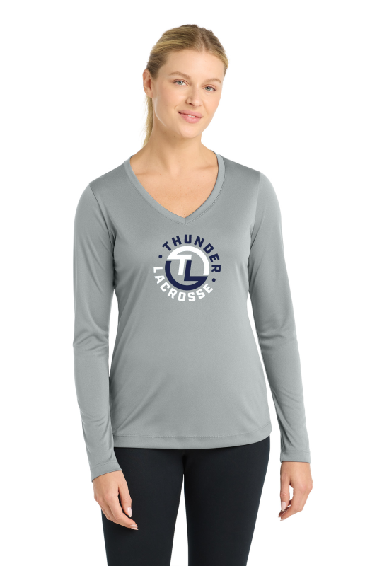 SPORT-TEK WOMEN'S LONG SLEEVE POSICHARGE COMPETITOR V-NECK TEE.-PRINTED
