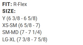 Size: Y (6 3/8 - 6 5/8) XS-SM (6 5/8 - 7) SM-MD (7 - 7 1/4) LG-XL (7 3/8 - 7 5/8)
